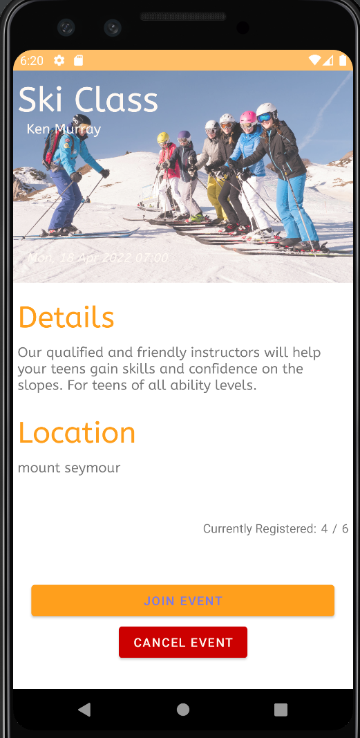 And andoid app in Java that allows users to join and participate events hosted my people, and allow the host to advertise their events. The app also allows users to scan QR codes to join events so they can be verified.